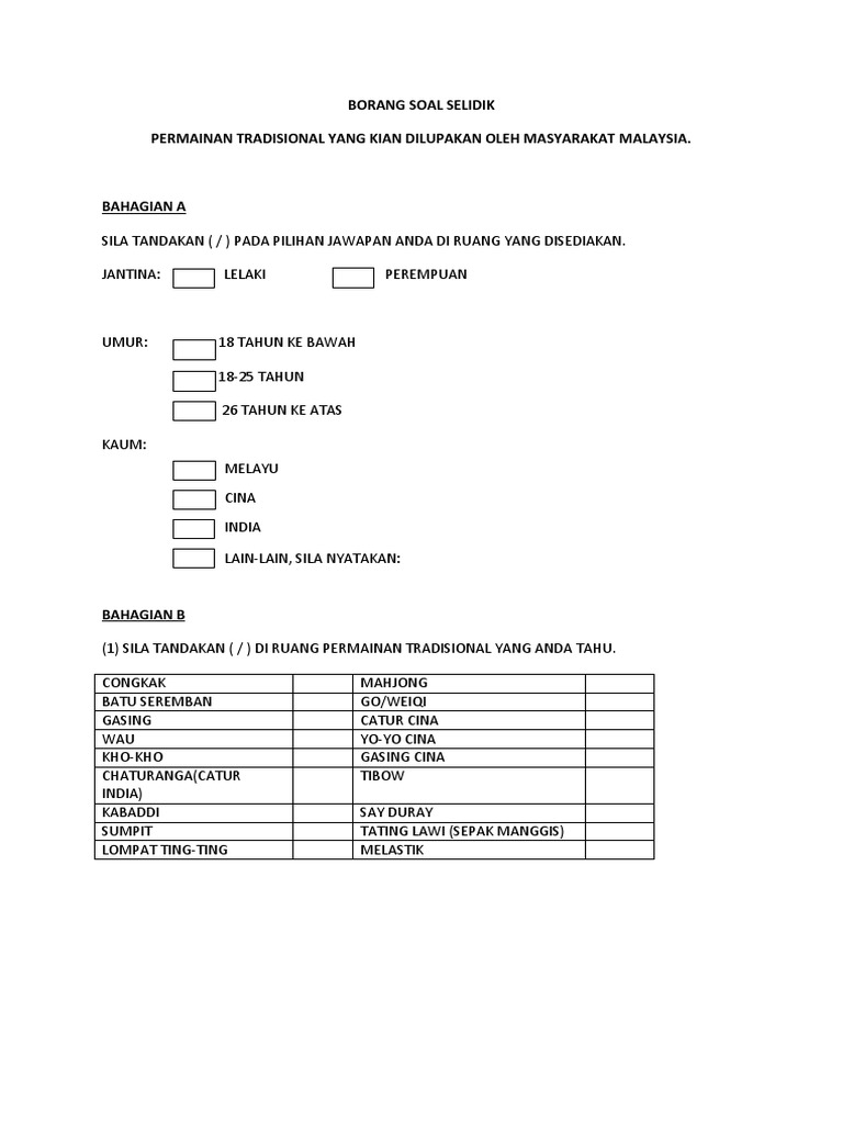212 contoh borang soal selidik untuk menjawab soalan ini pelajar perlu keluar rumah membuat tinjauan di sekitar tempat tinggal. Sila lengkapkan Borang Kaji Selidik berikut bagi membolehkan kami berkongsi maklumat berkaitan produk dan kebaikan PruBSN Takaful. Anda dikehendaki menjawab soalan yang terdapat dalam kaji selidik ini dengan jujur.